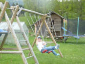 Schaukel, Rutschturm, Sandkasten, Hühnerstall,